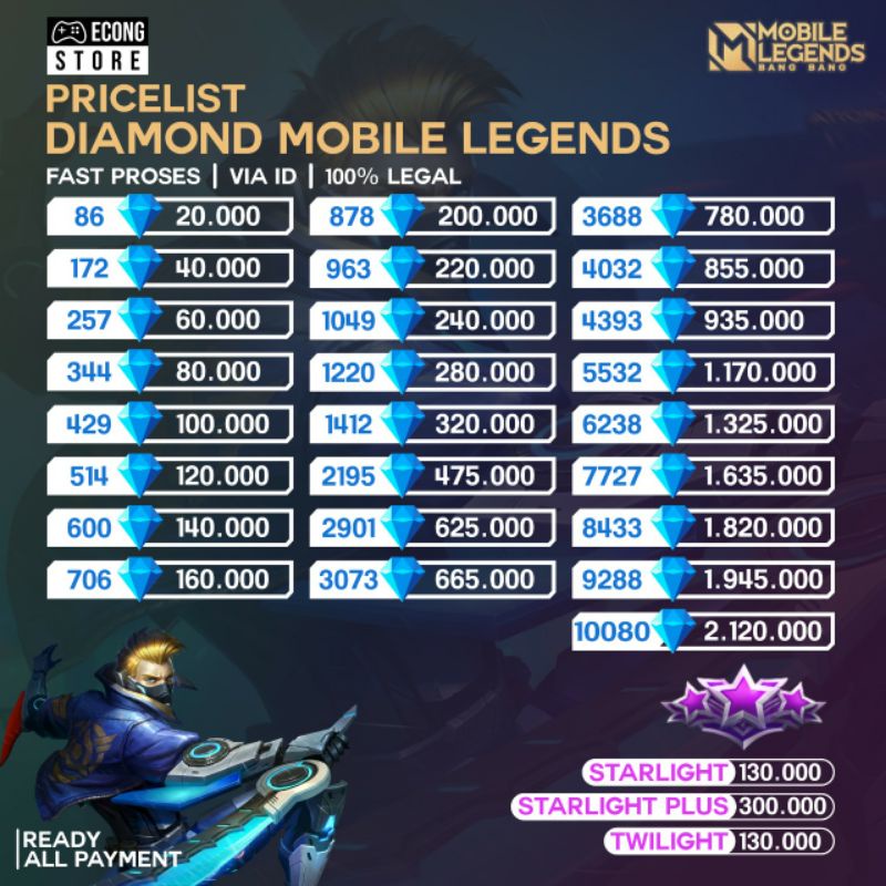 ∙ promo pengguna baru ∙ kurir instan ∙ bebas ongkir ∙ cicilan 0%. May 10, 2021 · cara jualan diamond mobile legends akan kami bahas di sini. 330 ml (0,29 € za 100 ml) (1). Pada waktu yang bersamaan, ada.