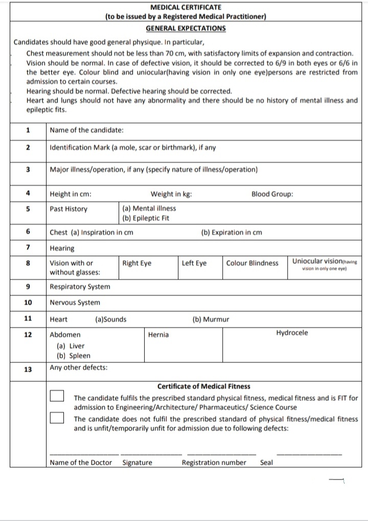 Certificate of medical fitness the certificate must be from the medical officer or any rank above it from any central/state government hospital/dispensary/medical college must be brought by the candidate at the time of interview... Physical fitness certificate for admission to engineering / medical & allied courses ….…………………. Start a free trial now to save yourself time and money! 19/10/2020 · you are requested to upload your medical form to the following link cfp_medical fitness certificate 2020 (ug) the filename should be your name & your code no. 19/10/2020 · you are requested to upload your medical form to the following link cfp_medical fitness certificate 2020 (ug) the filename should be your name & your code no.
